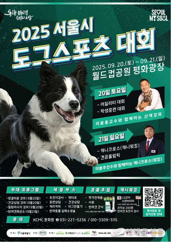 도그스포츠가 낯선 시민이라면, 9월 21일 진행되는 ‘견공올림픽’에 참여해 볼 수 있다. 반려견과 함께 30미터를 달리는 ‘보호자와 함께 달리기’, 결승점에서 보호자가 반려견을 불러 가장 먼저 도착한 반려견을 뽑는 ‘스피드 경기’, 봉 사이를 왕복으로 통과하는 ‘위브폴’ 등 6개 종목으로 구성되며, 종목별 50팀을 모집한다.