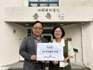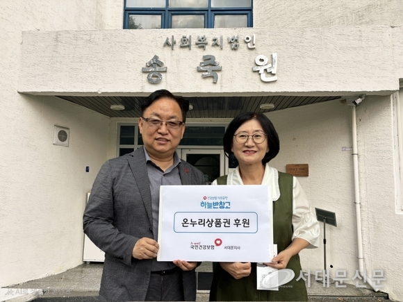 송죽원에 온누리상품권을 전달하는 김성수 서대문지사장(사진 좌)