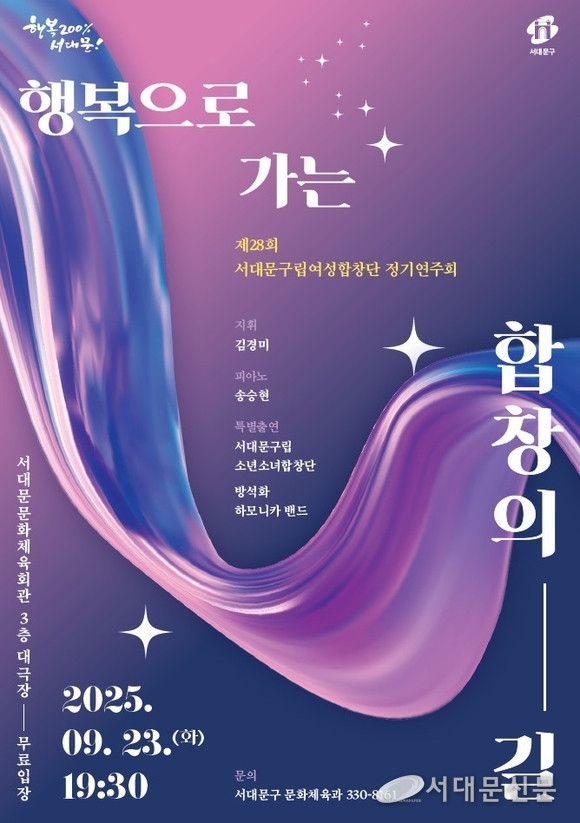 서대문구(구청장 이성헌)가 이달 23일 저녁 7시 30분 서대문문화체육회관 대극장에서 제28회 서대문구립여성합창단 정기연주회를 개최한다.