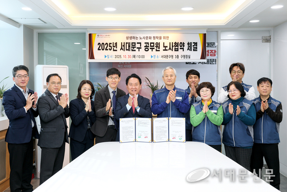 서대문구(구청장 이성헌)는 공무원 노조와 실무교섭을 마무리하고 최근 노사 협약을 체결했다고 4일 밝혔다.