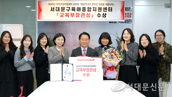 서대문구(구청장 이성헌)는 서대문구육아종합지원센터가 최근 ‘대한민국의 내일을 키웁니다 – 20205년 육아종합지원센터 공모’에서 영유아 발달지원 사례 우수 기관으로 선정돼 교육부장관상을 수상했다고 16일 밝혔다.