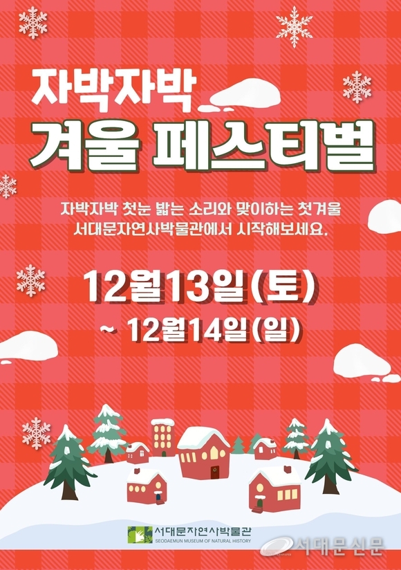 서대문자연사박물관이 이달 13일과 14일 ‘자박자박 겨울 페스티벌’을 개최한다. 이를 통해 관람객들에게 자연사와 과학을 재미있게 접할 수 있는 다양한 프로그램과 특별한 문화 체험의 기회를 선사한다.
