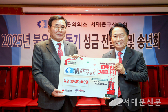 서대문구상공회(회장 최규득)는 지난 12월 22일 서대문구(구청장 이성헌)에 ‘2026 희망온돌 따뜻한 겨울나기 성금’ 천만 원을 기부했다.