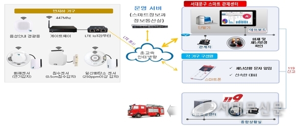 이 서비스는 IoT 센서로 화재 연기뿐만 아니라 겨울철 수도관 동파로 인한 침수까지 실시간 감지한다.