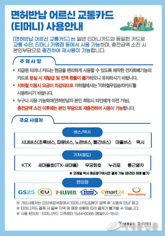 서울시가 교통안전 강화를 위해 시행하고 있는 ‘어르신 면허 반납 교통카드 지원사업’을 1월 말부터 조기 추진한다. 어르신 운전면허 자진 반납 제도가 교통사고 감소에 실질적인 효과로 이어질 것으로 전망되는 만큼, 지속적인 사업을 추진할 예정이다.