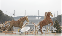 서울시 서부공원여가센터는 2026년 병오년을 맞이하여 월드컵공원(평화의 공원) 유니세프광장에서 제8회 억새풀 자연미술 전시를 내년 3월 31일까지 운영한다고 밝혔다. 내년은 붉은 말의 해로 <마부정제(馬不停蹄)>의 의미를 담은 억새말 형제 조형물을 선보인다. ‘마부정제(馬不停蹄)’는 ‘말의 발굽이 멈추지 않는다’는 뜻에서 유래한 사자성어로, 지속적인 도전과 전진의 의지를 담고 있다. 억새말 형제 조형물은 이러한 주제를 시각화해 평화의 공원을 힘차게 달리는 모습으로 구현하였다. 또한, 지난 서울억새축제에서 큰 호응을 얻었던 억새 포토존도 다시 선보인다. ‘날개 포토존’, ‘나비 포토존’, ‘금빛 고리 포토존’ 등 다양한 형태의 조형물을 구성해 억새말 외에도 여러 억새 포토존을 즐길 수 있다. 또한 소나무 솔가지와 억새꽃으로 제작한 자연물 ‘억새트리’도 함께 전시해 겨울철 공원경관의 풍성함을 더했다. 이와 함께 천천히 엽서를 발송하는 ‘공원우체통’을 설치해, 방문객이 소중한 이에게 새해 인사를 전할 수 있는 체험도 상시 운영할 예정이다. ‘억새말 형제 전시’ & ‘억새 포토존’은 2026년 3월 31일(월)까지 운영되며 점등 관람 시간은 매일