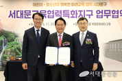 서대문구(구청장 이성헌)는 이달 25일 홍제폭포 복합문화센터 2층에서 서울시교육청과 ‘서대문교육협력특화지구’ 업무협약을 체결했다고 밝혔다. 협약식에는 정근식 서울시교육감과 주석표 서울서부교육지원청 교육장을 비롯해 각 기관 관계자들이 참석했다. 이번 업무협약은 서대문구와 서울시교육청이 상호 긴밀한 협력을 통해 학생들의 미래 역량을 강화하고 서대문구-학교-교육지원청 간 협력 구조를 체계화하기 위해 이뤄졌다. 구는 2024년 서울서베이에서 교육환경 만족도 ‘자치구 종합 1위(공교육 1위, 사교육 1위)’를 기록하며 교육도시로서의 경쟁력을 입증한 만큼 이번 협약을 통해 지역 특색을 살린 교육 지원 체계를 더욱 공고히 한다는 목표다. 협약에 따라 서대문구와 서울시교육청은 ▲지역 특색사업 운영 ▲지역사회 연계 교육 내실화 ▲학생맞춤통합지원 체계 구축 ▲지역 교육발전 기반 조성 등을 위해 협력한다. 이성헌 구청장은 “서울시교육청과의 업무협약을 계기로 어린이와 청소년이 200% 행복한 미래교육도시 서대문구를 위해 특화사업 발굴과 지원에 더욱 힘쓰겠다”고 말했다. 자세한 내용은 서대문구청 교육지원과 미래교육팀(02-3140-8092)으로 문의하면 된다.